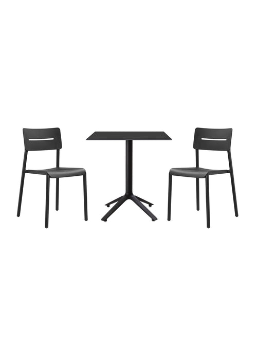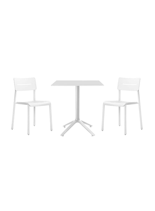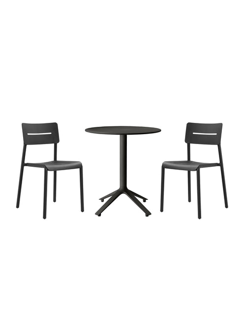 Chaque ensemble bistro inclut une table et deux chaises parfaitement coordonnées. Choisissez les chaises Stellar pour un look affirmé, les Stellar perforées pour plus de légèreté visuelle, les YARD au style graphique ou les OUTO avec accoudoirs intégrés pour un confort accru. Jumelées à la base stable de la table EEX, ces combinaisons offrent une solution cohérente, empilable et durable, idéale pour terrasses résidentielles, cafés, hôtels et espaces professionnels.